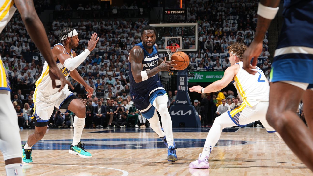 What we realized: Minnesota got here out with the mandatory drive to even this collection, beginning Sport 2 with a 13-0 run with Julius Randle setting the tone with two assists and 5 factors throughout that surge. With Stephen Curry on the sideline with a strained left hamstring, Golden State fell behind 25-7. The Warriors’ offense went by way of Jimmy Butler, however there wasn’t sufficient offense from him as he took solely 13 pictures. Buddy Hield, now dealing with higher defenders with Curry out, was held in test for a lot of the sport earlier than ending with 15 factors. Brandin Podziemski contributed 11 factors, six rebounds and 6 assists however will most likely have to attain 20 or extra with Curry out for Golden State to have an opportunity to win. And after hitting 4 3-pointers in Sport 1, Draymond Green went 1-for-6 from behind the arc. Steve Kerr — who performed 14 gamers within the first half, most by a staff since 1998 — discovered a spark in Jonathan Kuminga and Trayce Jackson-Davis. Kuminga hit his first seven pictures earlier than ending with 18 factors, and Jackson-Davis had 15 factors whereas making all six of his makes an attempt. However they could not overcome the Wolves, particularly with Anthony Edwards returning for the second half after he injured his left ankle. Edwards had 20 factors and 9 rebounds whereas Randle added 24 factors, 11 assists and 7 rebounds. Jaden McDaniels additionally performed effectively with 16 factors on 7-for-10 capturing. Golden State obtained inside seven within the third quarter however could not get any nearer. The Warriors will head again to San Francisco nonetheless trying to discover the place the offense will come from with out Curry. — Ohm Youngmisuk