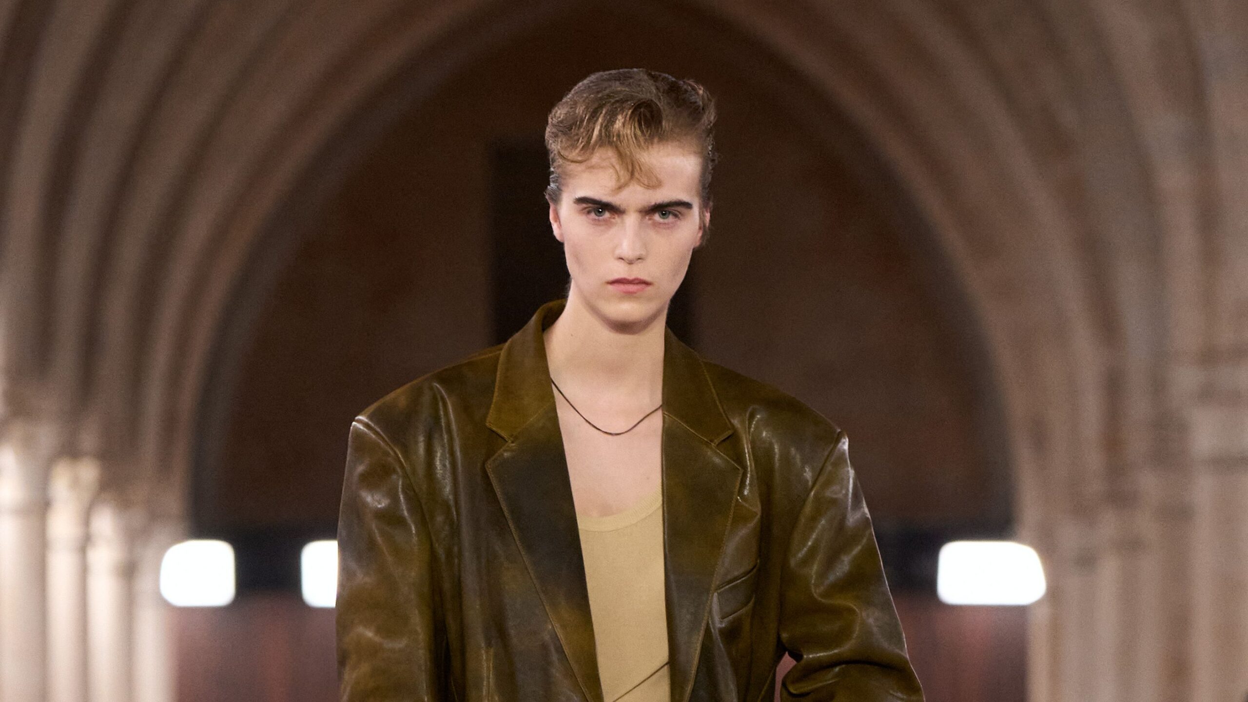Outsized blazers got here in handled leathers and suedes and paper-effect cloth, over straight-cut high-rise denims with a beneficiant break. Lengthy-hemmed test shirts had been typically layered over sheer skirts. An outsized biker with vast whipstitch particulars was a beautiful remixed archetype.