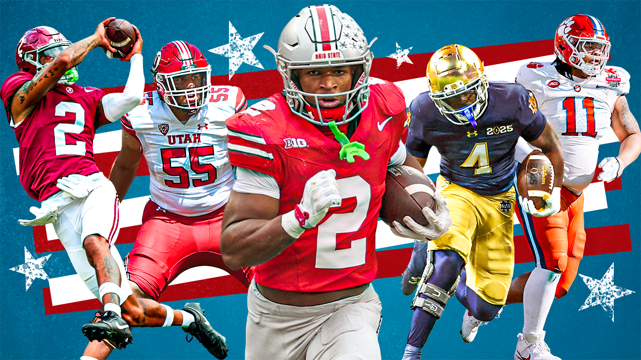 We unveil ESPN’s 2025 preseason All-America group realizing there will not be any debate about these gamers left off (sure, that’s sarcasm). Solely 5 gamers who have been first-team choices on our 2024 postseason team made the lower: Ohio State receiver Jeremiah Smith, Florida heart Jake Slaughter, Texas linebacker Anthony Hill Jr., Ohio State security Caleb Downs and Michigan place-kicker Dominic Zvada.