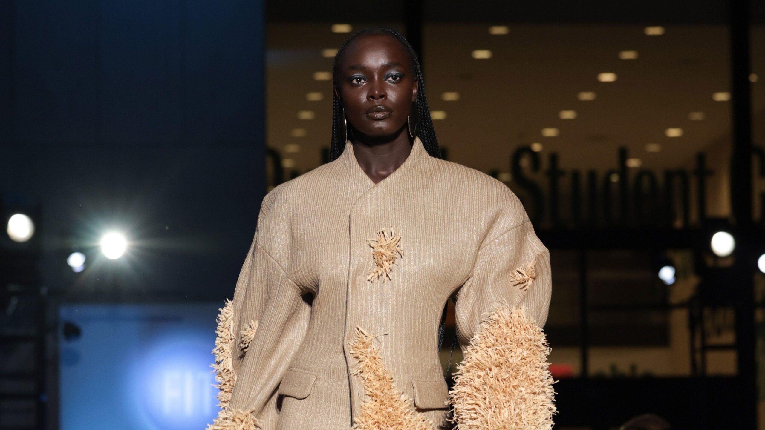 Concurrently, within the aftermath of the pandemic, the dean has observed that the scholars have “reengaged with materials…we’ve seen a fast enchancment of their hand expertise and an curiosity in quite a lot of textures, of supplies, of construction.” All of those qualities had been current within the work of Allison Margaret Smith (seems to be 1 and three), who kicked off the present with items made utilizing raffia, straw, jute, and balsa wooden, from a group that she hoped would “join with the huge landscapes of America and pay tribute to the sources this land has supplied for all its inhabitants.” Pictures of Pittsburgh’s evolution from the Carnegie Museum of Artwork’s Pictures Assortment had been the start line for Austin Marshalek’s knitwear (seems to be 52 and 53), whereas Nathaniel Samuel’s Belle Epoch-ish opera coat (look 80) was designed as a “love letter” to New York.