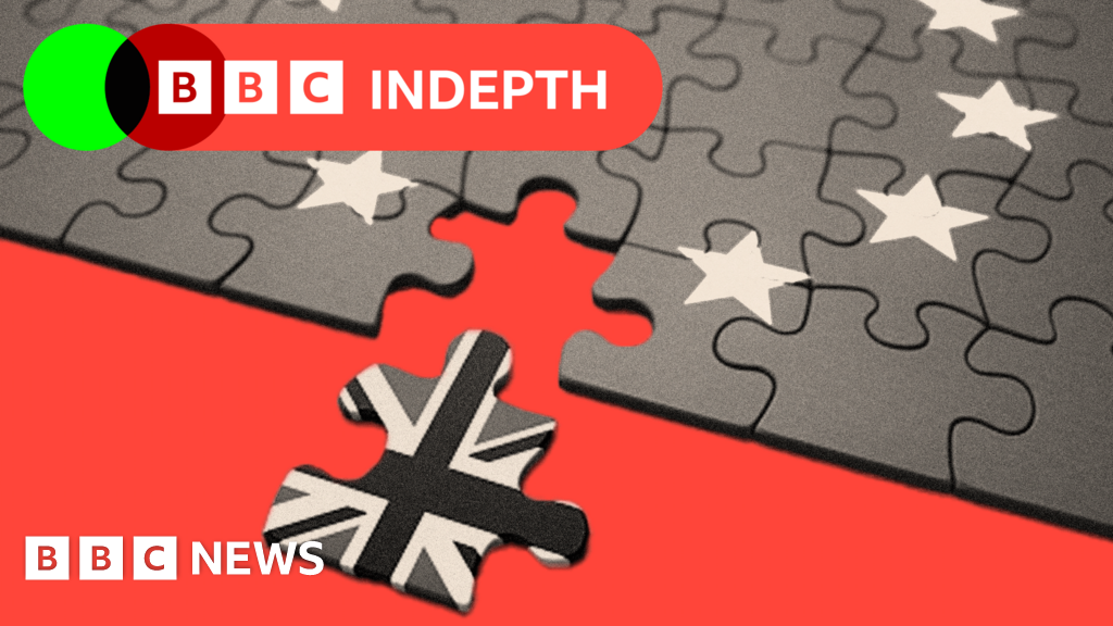 BBC A treated image of jigsaw puzzle where one piece with the UK flag is separated from the puzzle, and the rest of the pieces show the EU flagBBC