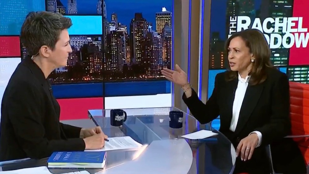 However permitting a lot time for Harris to try to unsay what her e book says made for a irritating viewing expertise for somebody exterior the core MSNBC demographic. Harris’ complete factor, up to now, has been a sure unknowability, a bent Maddow might typically, along with her amiable method to Harris, encourage. Throughout her foreshortened presidential marketing campaign, for instance, Harris did comparatively little press, and tended to take action late and solely in completely acquainted settings. (She additionally struggled even inside these: An look on “The View” wherein she couldn’t identify a distinction between her governing type and Joe Biden’s may very well be argued to have been her marketing campaign’s loss of life knell.)