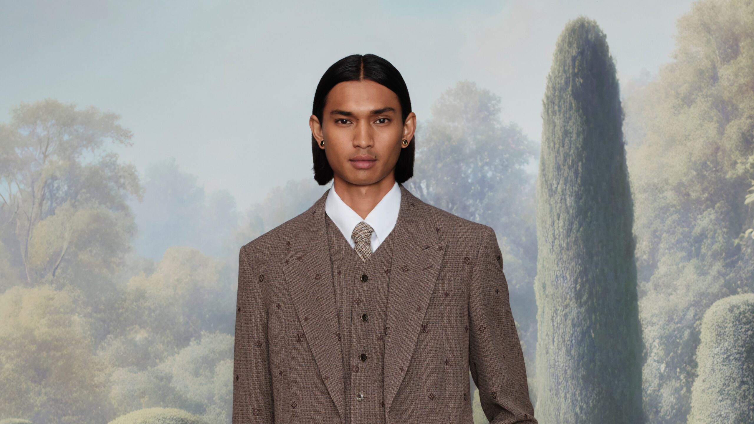 Whereas Williams was not available to stroll by way of the gathering, its footprints nodded to some traditional tropes of Anglomania through many dandyish diversions particular to his design course. His nods to le fashion anglais included a Prince of Wales verify tweed puffer, microcheck tailoring in the home’s serendipitously tweedy hues of brown minimize in denim or wool and patterned with broadly spaced monogram logotypes, a tailor-made prime coat in herringbone, commuter-friendly quilted jackets, and a verify collarless jacket. Jackets that distorted the gridded geometry of the home sample with raindrop circles had been true reflections of the LV crew’s inspirational supply territory. There was a riff on the cricket sweater. Foxes and crowns adorned a woven print jacket.