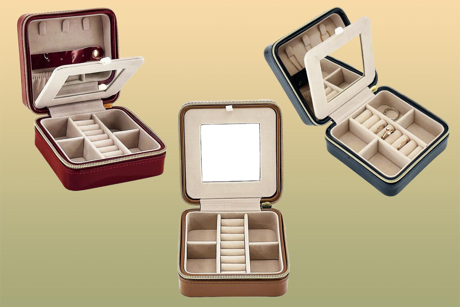 The outside of this travel jewelry case is constructed with a shiny vegan patent leather-based that provides it a wealthy really feel; in the meantime, the inside is lined with a layer of soppy velour. It is available in eight totally different colours—purple, navy, fuchsia, saddle, nude, pink, black, and brown—and is often priced at $20 at Brouk & Co. However proper now, you’ll be able to rating each coloration for simply $16 at Amazon.