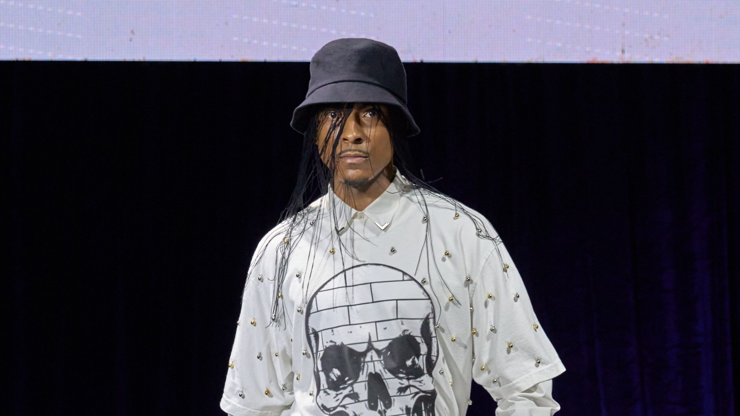 It was two days earlier than Romeo Hunte’s spring 2026 runways present, and the designer was strolling by means of the gathering in a midtown Manhattan lodge. The racks of denims, varsity jackets, and trench coats provided a glimpse at what was to return, however Hunte himself was the strongest embodiment of the season’s vary and perspective. “These are our Rocky shorts—I like them and I put on them on a regular basis,” he mentioned, pulling the identical pair of outsized sweat shorts off the rack that he had on. He’d paired them with a pinstripe button down bedecked with steel V-shaped collar suggestions, which was layered over a Romeo Hunte graphic tee. “This assortment goes to be styled very punk, however nonetheless very preppy and tailor-made,” he mentioned, citing the period when blink-182 dominated the airways as inspiration. “The music was dope, however to me, I used to be interested by who in these occasions was very distinctive for his or her appears to be like and their perspective and their affect.”