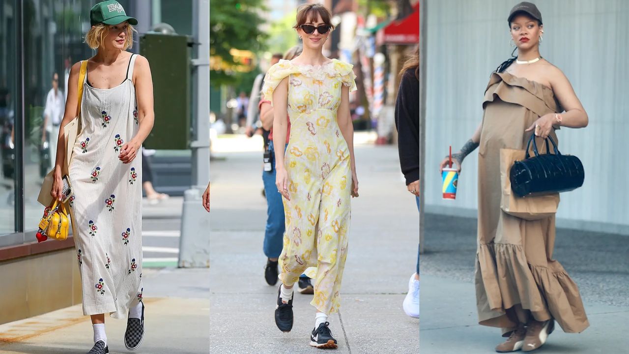 Even celebrities like Gigi Hadid, Dakota Johnson, Emily Ratajkowski, and Rihanna have been seen sporting this easy outfit idea on the road. It’s the laidback, East-meets-West coast manner of dressing—that emphasizes consolation with good style and makes this mix so undeniably interesting. Professional tip: It additionally doesn’t damage to have a trending sneaker within the combine, to amp up one thing as minimal as a slinky slip or fitted mini gown, as these ladies so typically show.