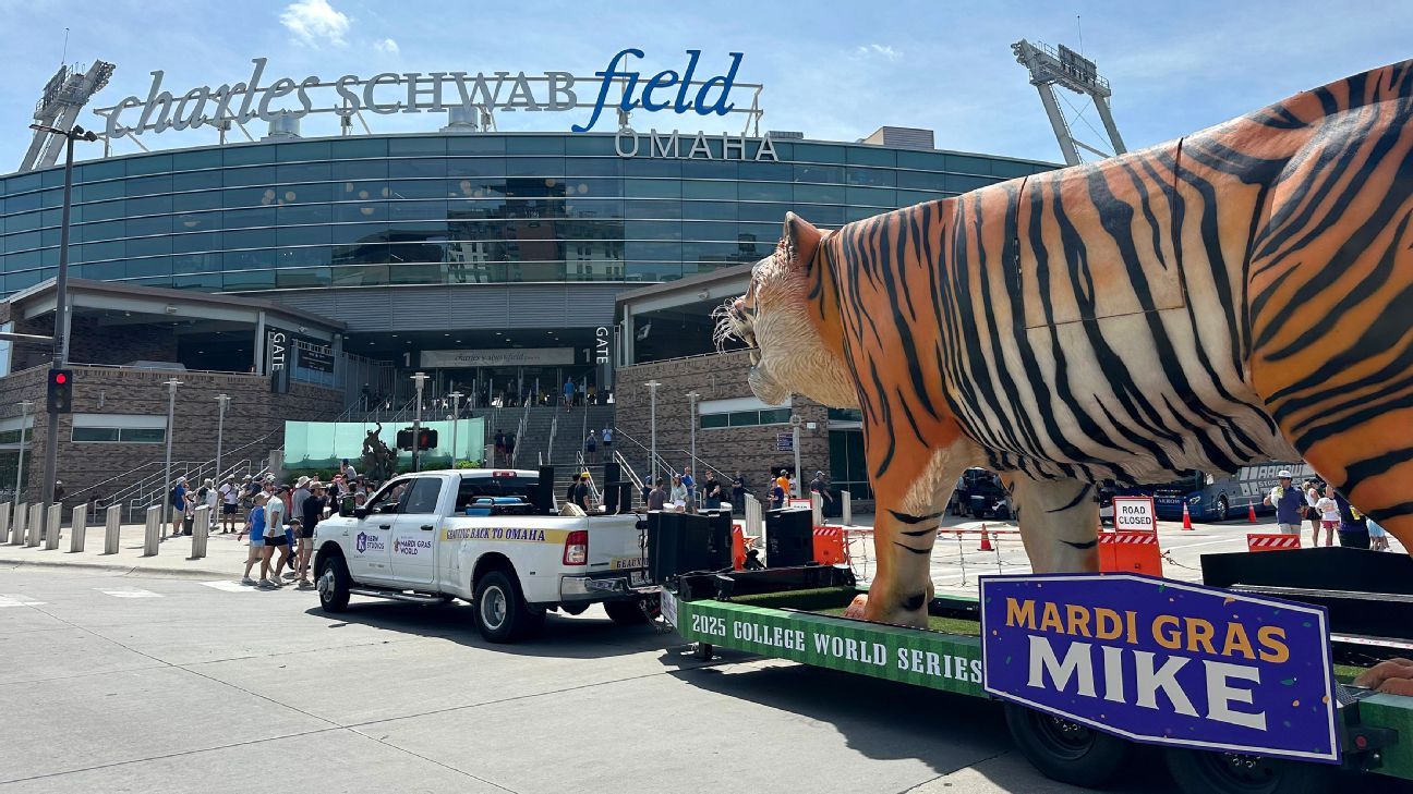 The float was unveiled final week at Alex Field Stadium in Baton Rouge, Louisiana, as followers despatched off the MCWS-bound LSU baseball staff to Omaha. From there, Mardi Gras Mike went on a 900-plus-mile journey to Omaha that was chronicled on social media. There was a snapshot of Mike at Arrowhead Stadium, residence of the Kansas Metropolis Chiefs, and somewhat troll picture of the float parked in Fayetteville, Arkansas, at Arkansas’ soccer stadium.