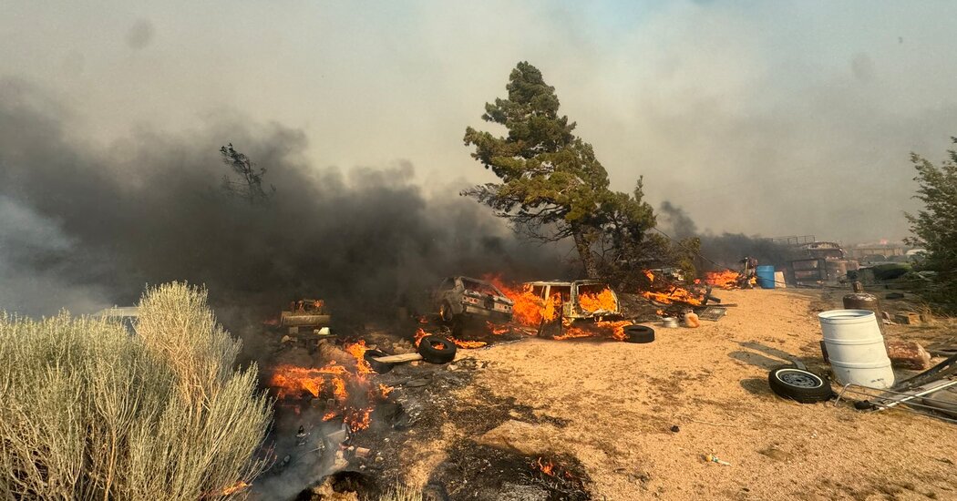 A wildfire that began on Tuesday afternoon north of the San Bernardino Mountains in Southern California had exploded to greater than 4,200 acres by Wednesday morning, pushed by excessive winds and dry circumstances, officers mentioned. It had prompted evacuation orders and was threatening a number of properties, officers mentioned.
