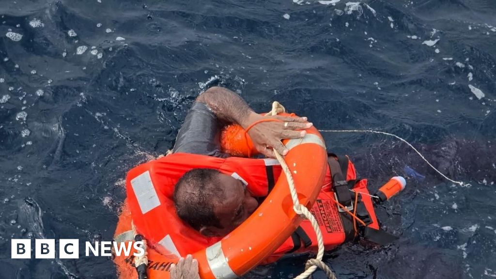 Diaplous/Handout via Reuters A crew member said to be from the cargo ship Eternity C, which sank after being attacked by the Houthis, is seen in the Red Sea during a rescue operation in this handout image released Greece-based maritime security firm Diaplous on 9 July 2025Diaplous/Handout through Reuters